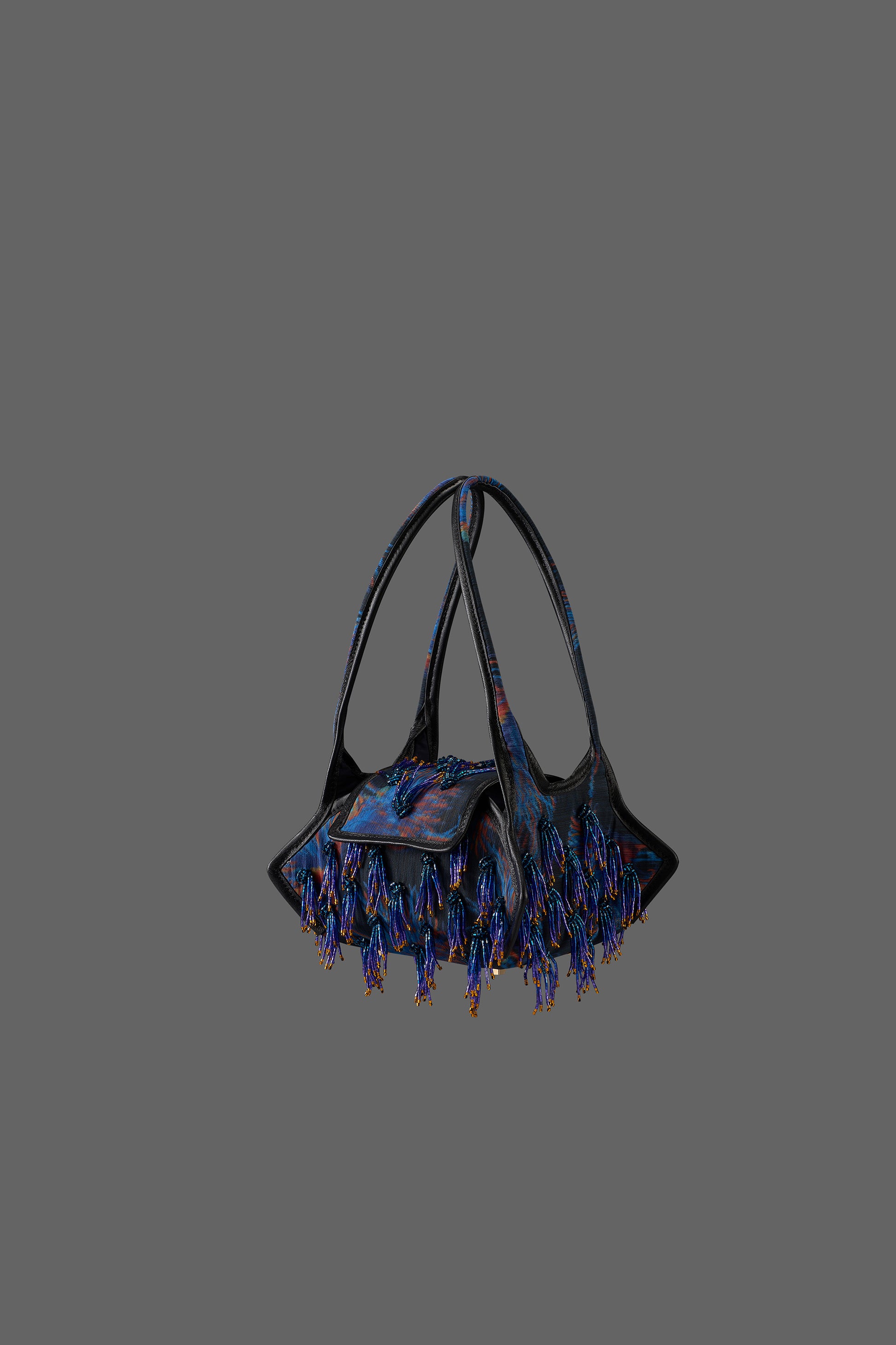 A collaboration with ONE OF - a New York-based womenswear label. The Blue Floral Print Swing features two long handles on the side and four supporting stud base. It can be accessed from the flap opening on the top.